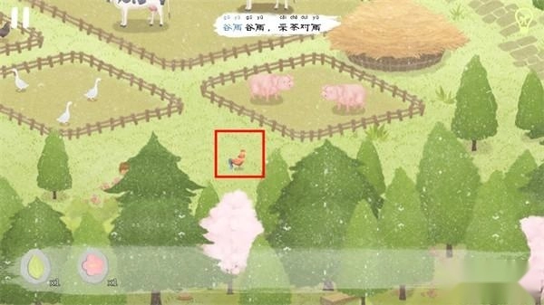 根据图腾所需的燕子、鸡、鱼的羽毛,燕子羽毛在游戏开头就能获得;鸡位于场景最左下角的红框处,多点击两下可获取鸡尾毛;最后是鱼鳞,只需放大屏幕,点击河里红框下方的鱼即可获得。
