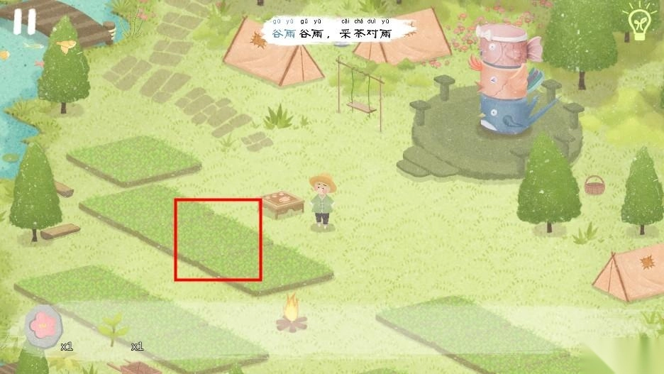 5、把所有虫子都赶走后就能得到一块花瓣石板,不过下一关的开启和花瓣石板没有关系,只要点击右上方的农民就能开启第六关谷雨了。