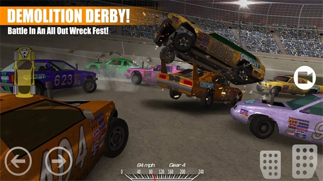 冲撞赛车2是该系列的第二部作品,英文名称为Demolition Derby 2。游戏里玩家能不受任何规则限制地自由驾车,核心目标就是撞毁其他车辆!每次撞击都会在车身留下凹痕之类的损伤痕迹,严重时还会造成车门脱落、引擎冒烟等效果。这种极具冲击力的视觉表现,能让玩家获得更强的沉浸感,非常值得尝试体验!