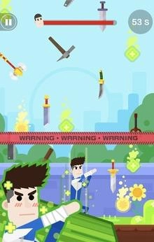 3、你要通过滑动屏幕控制小人的位置躲避飞刀。