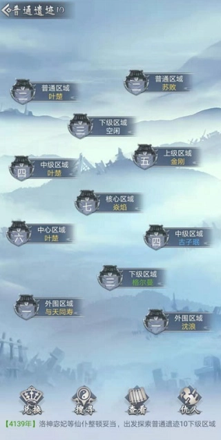 一个遗迹划分为核心区域以及上、中、下三个普通外围区域,共六个区域;占领这些区域就能获得资源,且资源产出量从核心到外围依次递减。