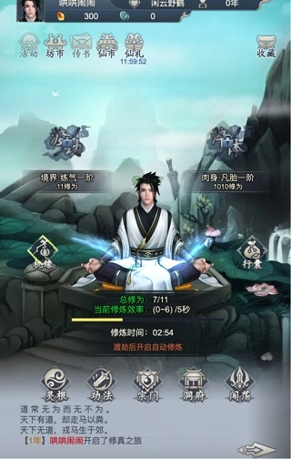 选好身份后,就能正式踏上修仙之旅了。进入游戏后,首先得记住每三分钟点击一次修炼,尽快升到筑基期开启自动升级是关键中的关键。