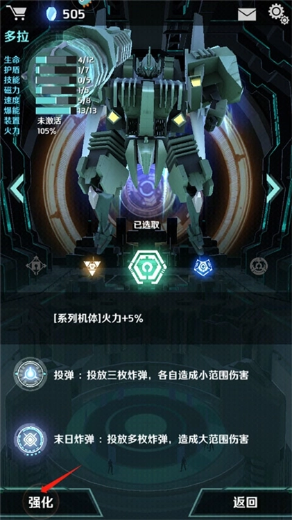初期资源比较紧张,特别是机甲芯片这类关键道具,建议优先把资源集中投入到单个技能表现突出的机甲上(哆啦不建议选)。机甲芯片的加点顺序,优先考虑护盾和技能这两个方向。
