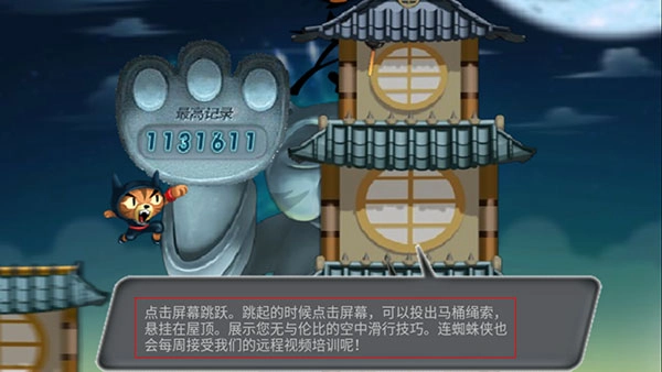 单次点击屏幕,忍者猫即可完成一次基础跳跃;