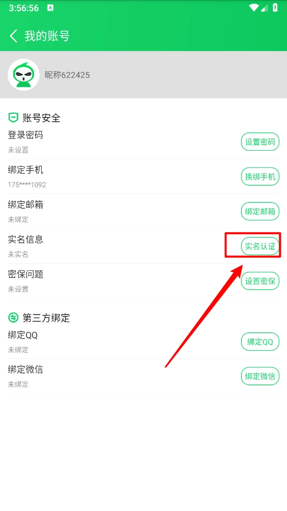 2、如图,在我的账号页面点击"实名认证"。
