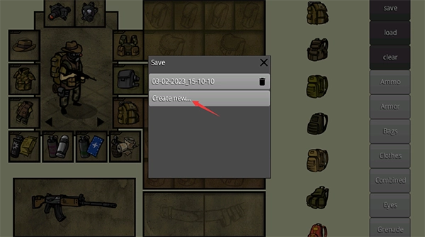 “导出”创建一个包含所有保存的角色和武器的文件