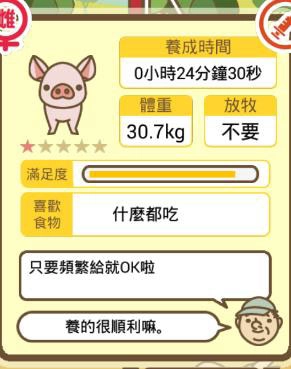 1、首先大家需要的是小猪购置的小猪都是猪仔,大家可以通过点击其身体,可以获得到以下信息