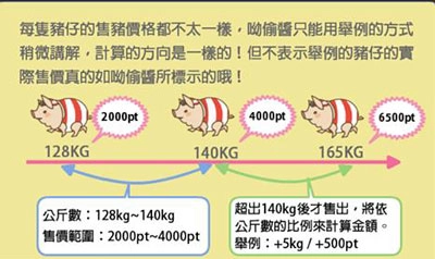 关于出货的问题,系统已自动设置为仅允许体重超过128kg的小猪进行售卖。毕竟小猪的养殖过程颇为不易,若体型过小就出售实在不划算。大家可以参考这份售卖价格表,从中能看到体型越大的小猪,对应的售价也会越高。