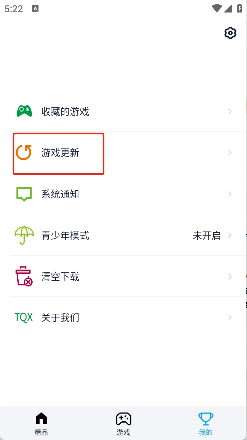 点击我的,进入游戏更新。