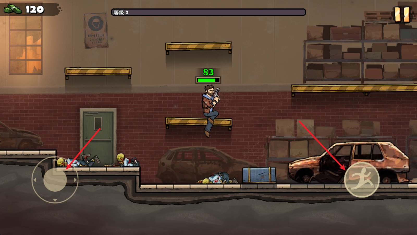 靠近僵尸后,角色就可以自动射击了。