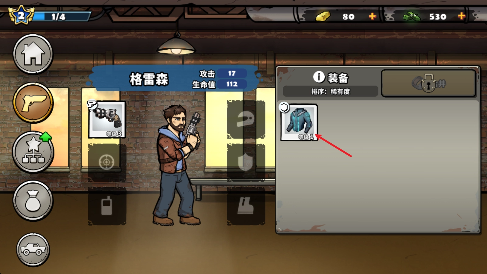 需要我们通过场景1的第10个房间后装备才会开启,之后点击左侧的第二个按钮。