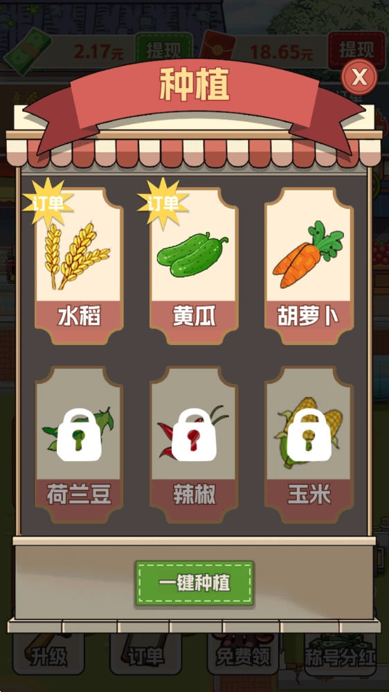 游戏里会持续刷新各类订单,每笔订单都对应不同作物,这些作物得靠种植逐步解锁,整体内容十分丰富。