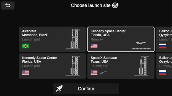 选好火箭后,你可以挑选想要发射的地点,这里有不同地点的发射台供你选择。
