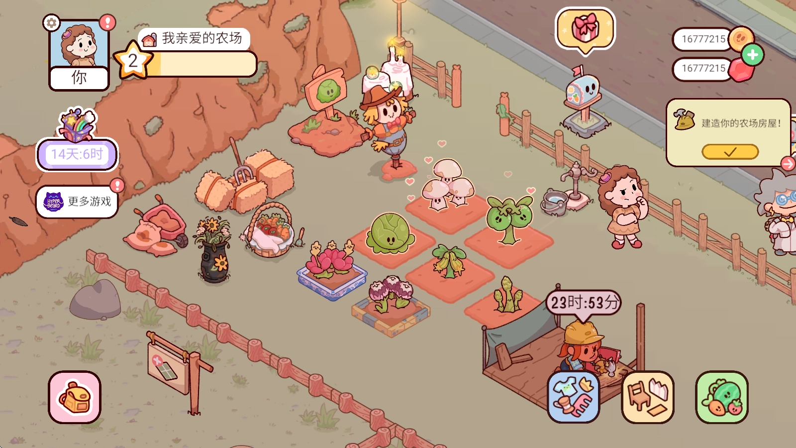 可以无拘无束地栽种各类作物,每种作物都有着Q萌软萌的可爱模样,让你的农场呈现出一派生机盎然、活力满满的景象。