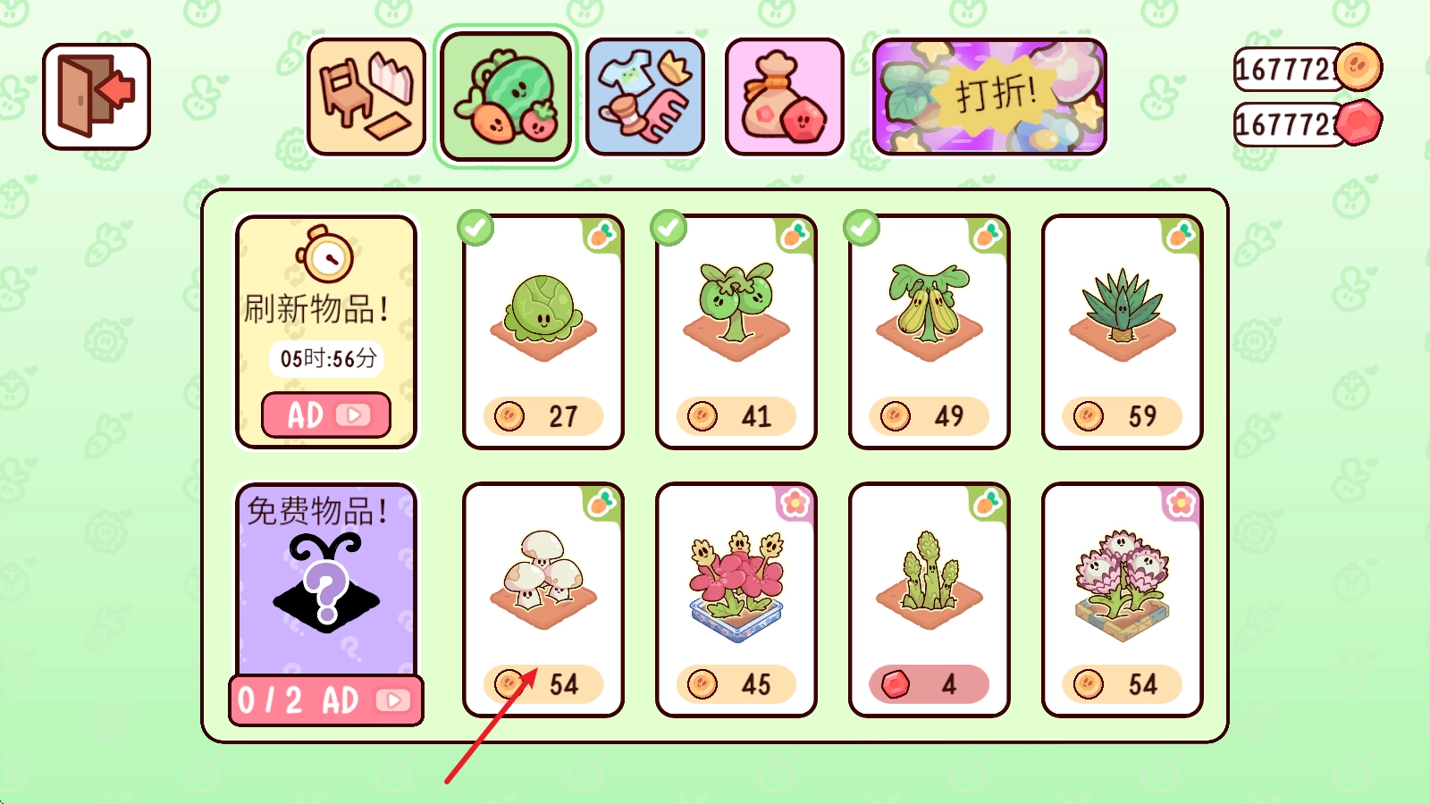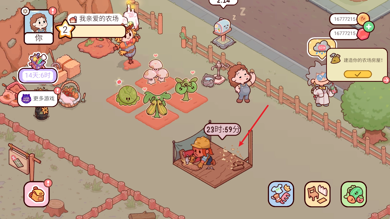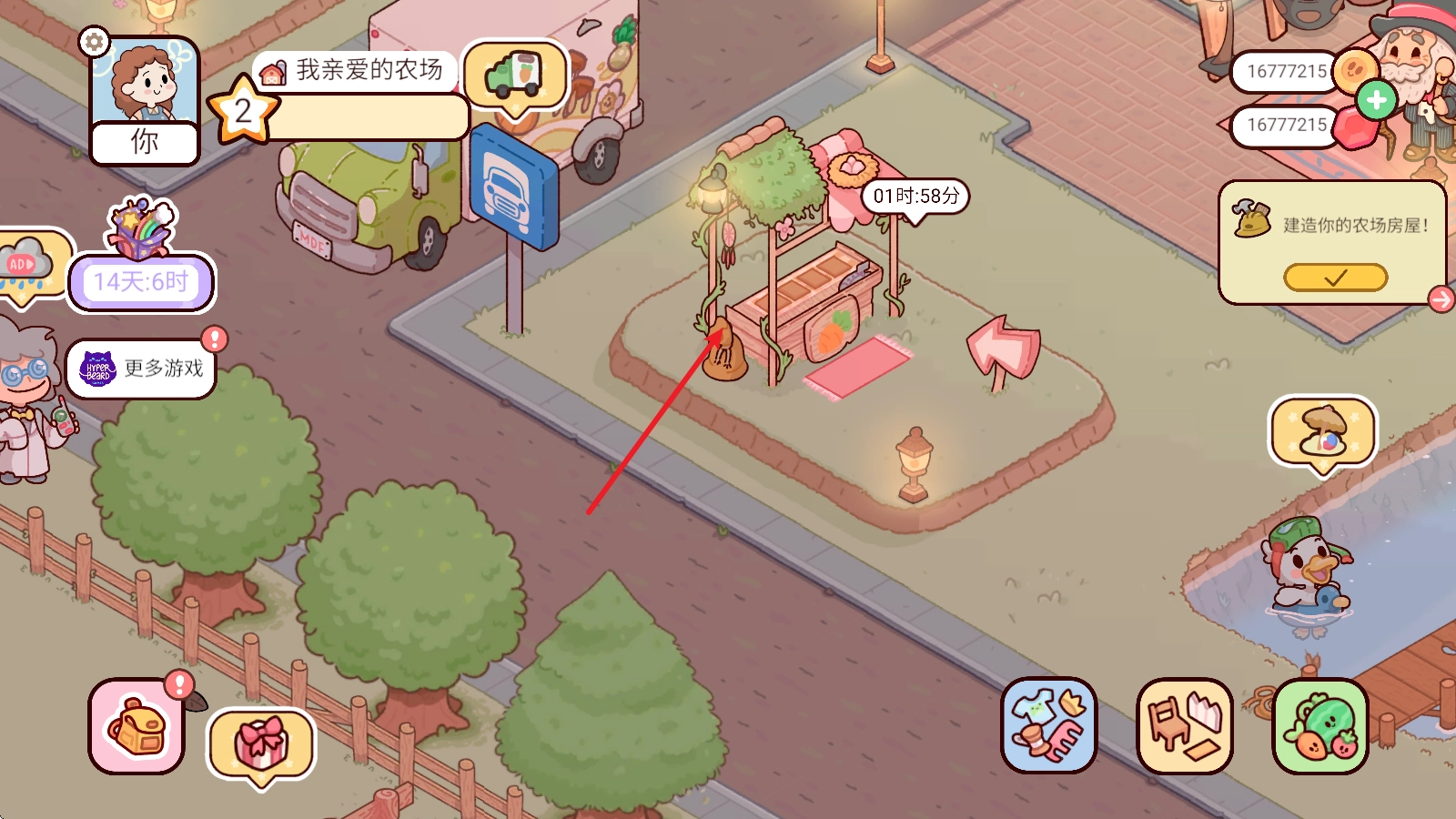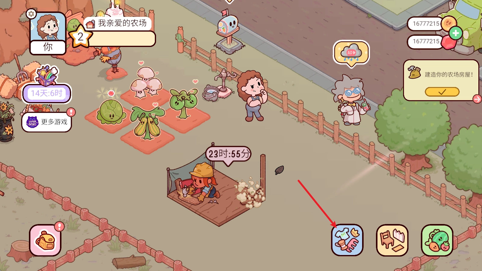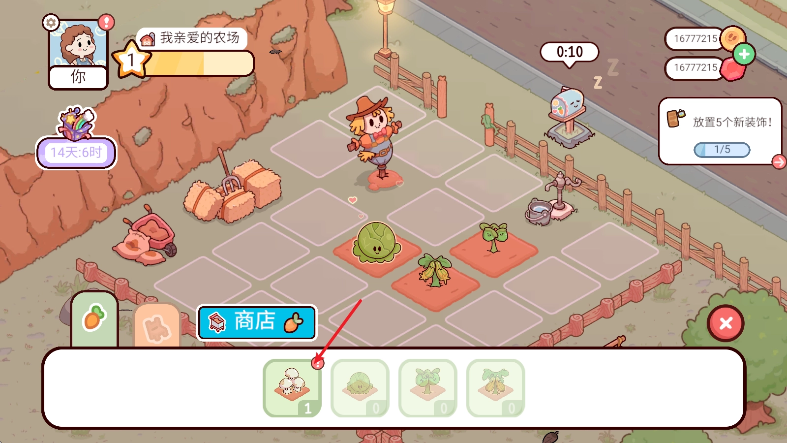 进入游戏后,我们得先开始种植,第一步就是点击右下角的果蔬商店。