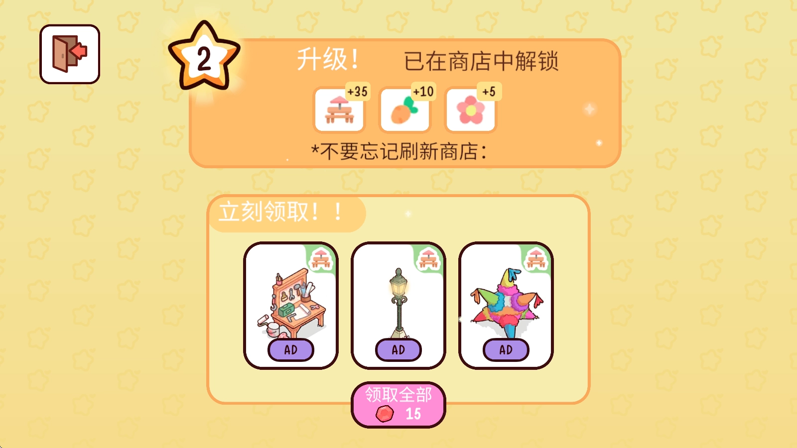 完成所有客人之后,就能结算获得奖励了。