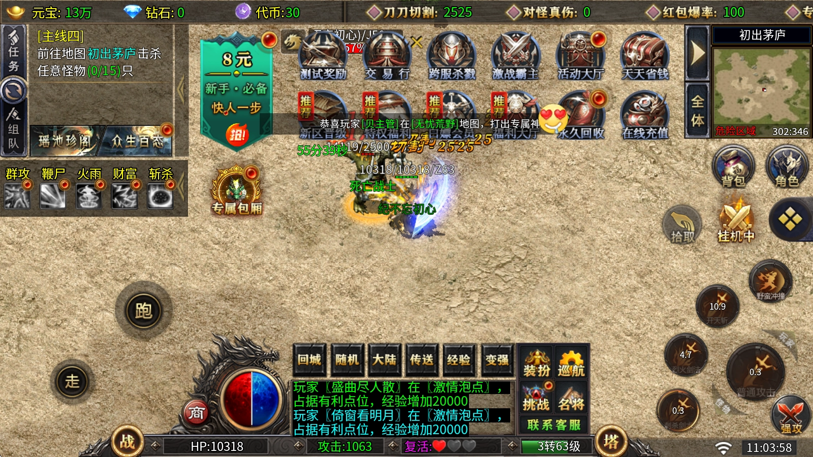 在本服务器里,时间是最关键的,装备属性更是重中之重。每天能打出价值1000多充值的资源,就算不氪金也能玩得畅快,这里绝对是散人的理想之地。