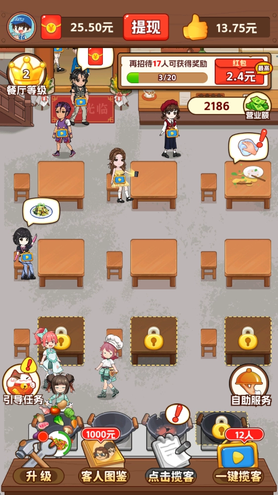进入游戏后,点击右下角的揽客按钮就能吸引客人过来就餐。