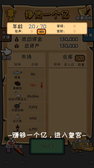 玩家必须借助手头有限的资源,以更合理、更恰当的方式进行投资,让初始的少量资本逐步翻倍,实现资产的不断壮大。