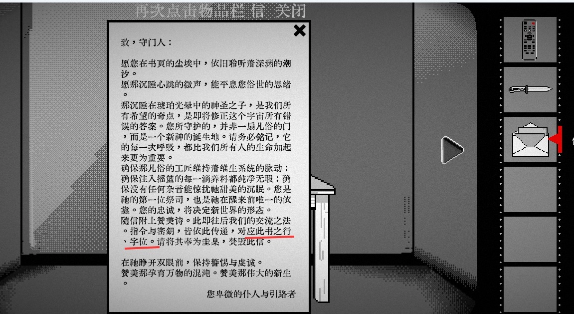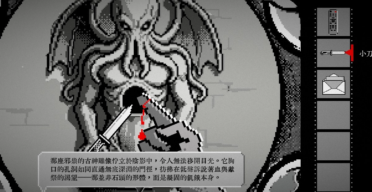 终厄围绕克苏鲁神话展开了一系列创作,以祂那令人恐惧的降临为故事背景,融合黑白画风与诡异的气氛渲染,使玩家在游玩过程中压力倍增,体验紧张又刺激的冒险解谜之旅。
