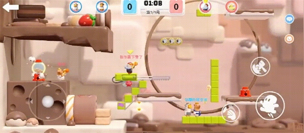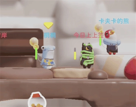 2、碰宝们需要在场景里搜集糖豆,投喂给贪吃豆仔得分,同时用武器攻击对手阻止对手获取更多糖豆。