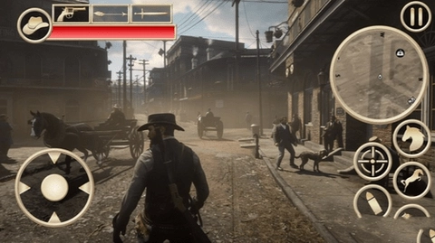 1、面对土匪时,可以点击游戏画面中左下方的手枪,然后点击土匪进行对抗。
