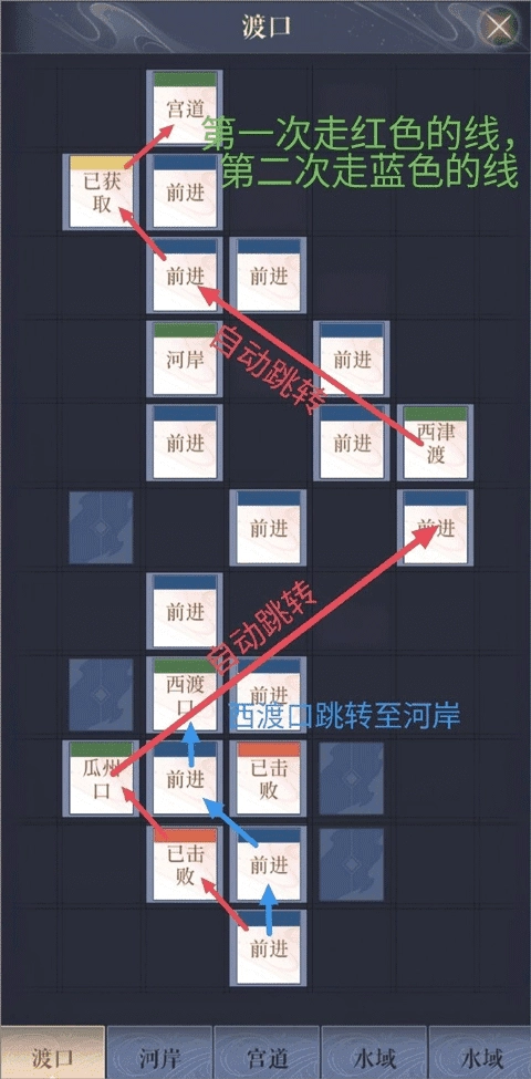 第一次沿着红色路线行进时,能得到四块地图碎片,之后还能再次进入。