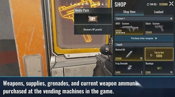 游戏中的自动售卖机可以购买武器、补给品、手榴弹以及当前武器的弹药。
