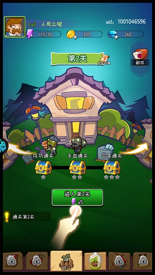 1、玩家通过点击关卡开始挑战,面对僵尸的进攻。