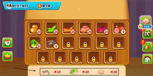 3、玩家需要尝试挑选对应的食材来进行制作,要是材料不足的话,就得自己动手种植。