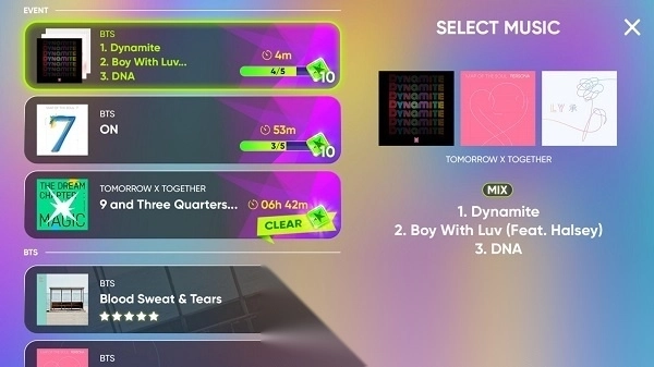 这款游戏采用经典的下落式音符玩法,玩家可以畅玩到来自BTS防弹少年团、TXT等HYBE旗下艺人团体的众多热门曲目。
