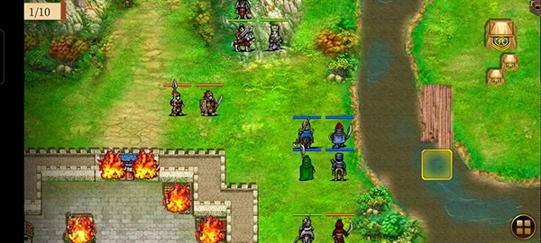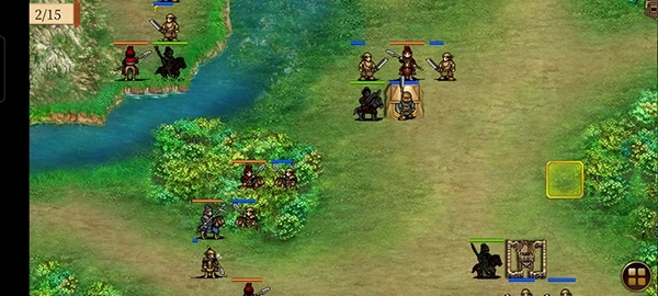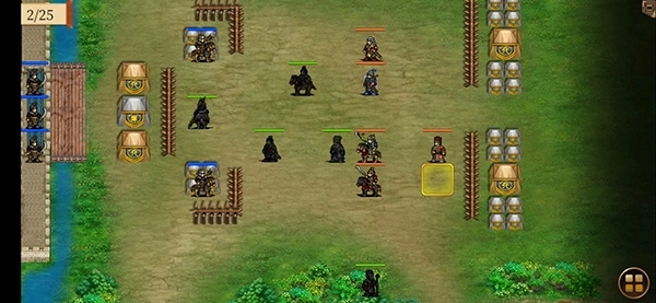 第一回合,三人移动到图中所示位置,张飞进行一次攻击,关羽则负责解决掉弓兵。