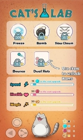 2、闯关时得时刻提防其他动物来捣乱,要是稍有疏忽,猫咪就会饿得发脾气,这样一来游戏的紧迫感也会随之增强。
