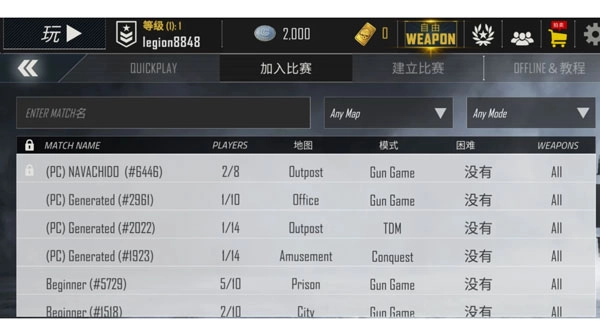 通过使用您自己的自定义设置创建自己的自定义匹配来设置所需的匹配项。创造新的和现代的战斗PVP。