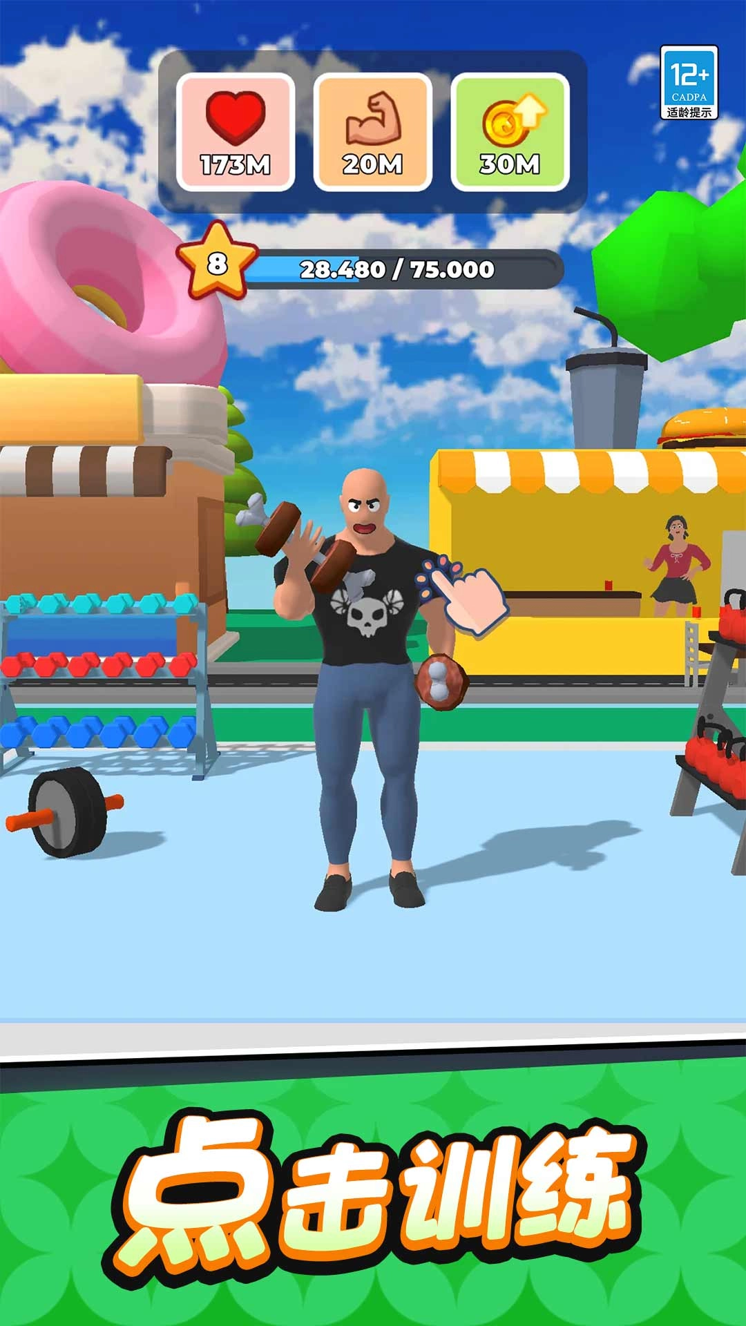 1.健身模拟:通过点击屏幕加速完成训练任务,如跑步等,每次训练都会提升角色的力量、速度或耐力属性。