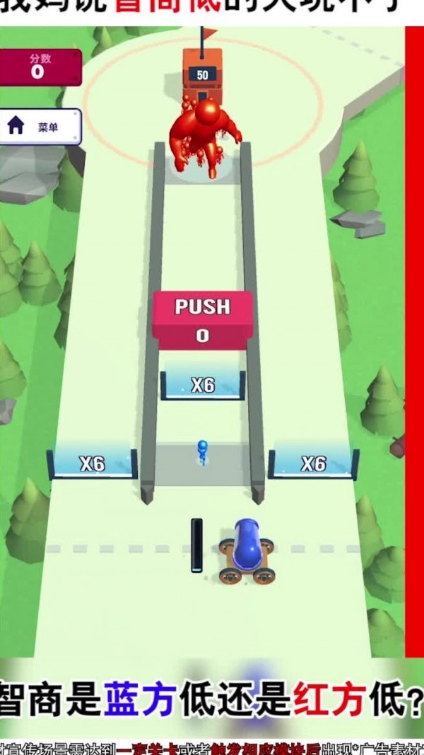 是一场非常考验休闲竞争策略的小游戏。游戏分为红蓝两种阵营,每个阵营都有一门大炮不断发射小战士,
