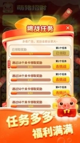 3、在萌猪招财里,那些萌萌的小猪正等着玩家来消除,能让玩家抛开烦恼,尽情享受其中的乐趣。