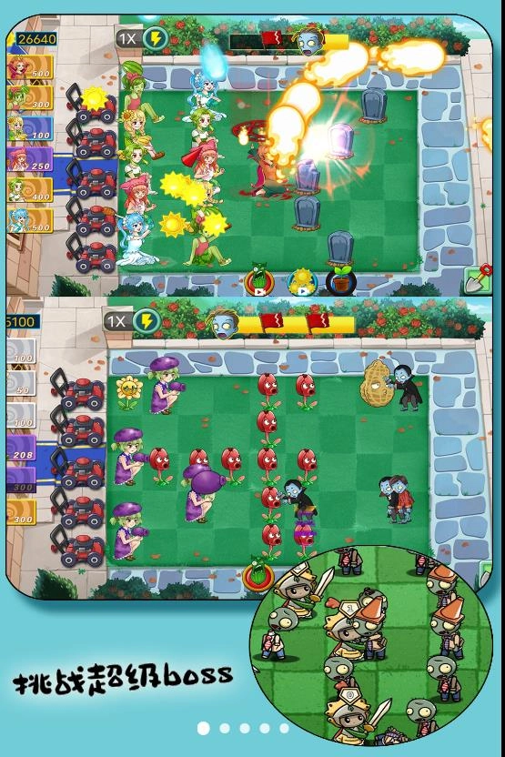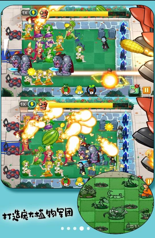 2、每个关卡开启前,玩家需要仔细挑选植物兵种,并在战场上巧妙布局,从而最大程度地发挥它们各自的优势。