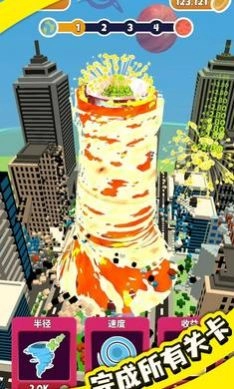 挑战不同难度的障碍物,创造出威力更强的龙卷风,尽情享受摧毁一切的畅快体验。