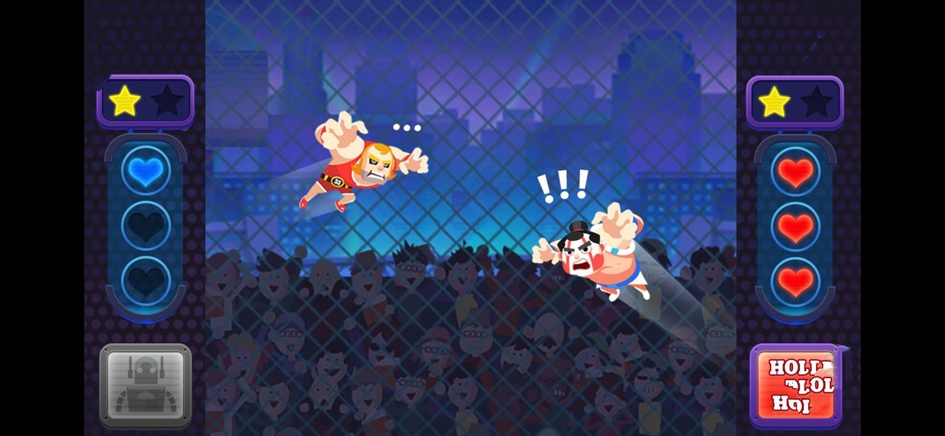 《暴怒的拳头》是一款全新推出的格斗竞技游戏,整体采用卡通风格打造,画面呈现出精致细腻的质感。在游戏里,玩家将化身为一名摔跤手,你的摔跤技艺已臻世界冠军级别,各类竞技技能都运用得十分娴熟。每场竞技对决中,双方各有三滴血的设定,只要将对手的血量全部耗尽,即可赢得胜利。对这类游戏感兴趣的朋友们不妨尝试一下。