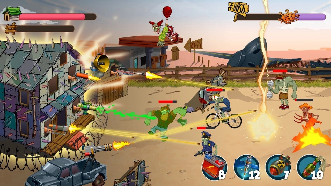 2.不同种类的僵尸具备各异的战斗力。解锁新类型僵尸会带来不同的玩法体验。目标是消灭前方出现的僵尸。