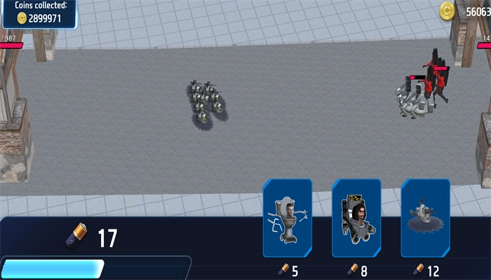 2、收集各类资源,逐步建设并升级基地设施,招募马桶人士兵并对其进行强化训练,从而打造出一支强大的军事力量。