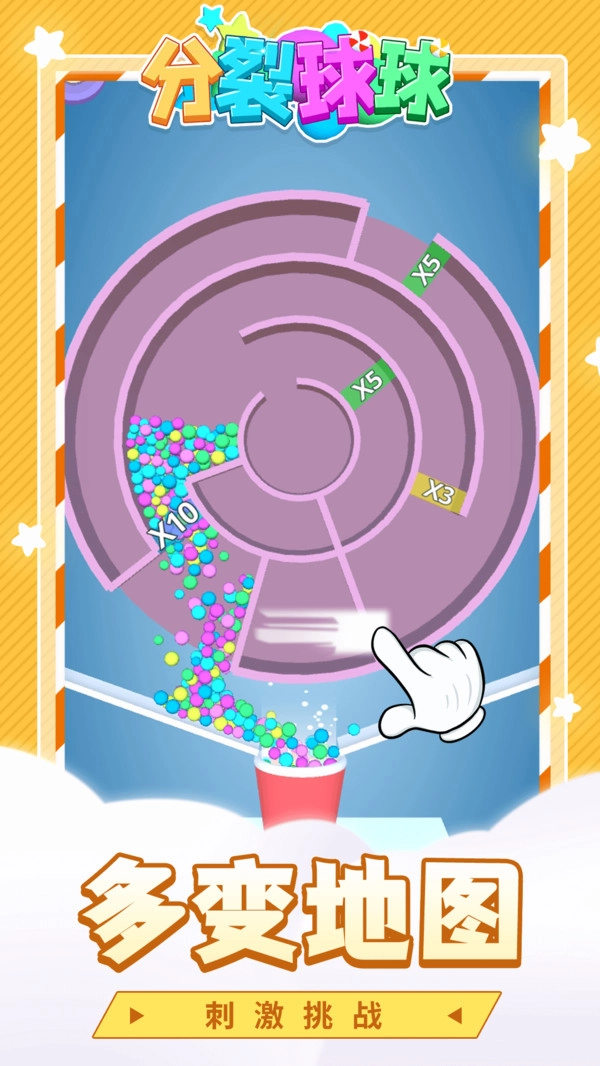 2、分裂球球的玩法轻松自在,节奏舒缓惬意,很适合用来打发闲暇时光,让心情得到放松。