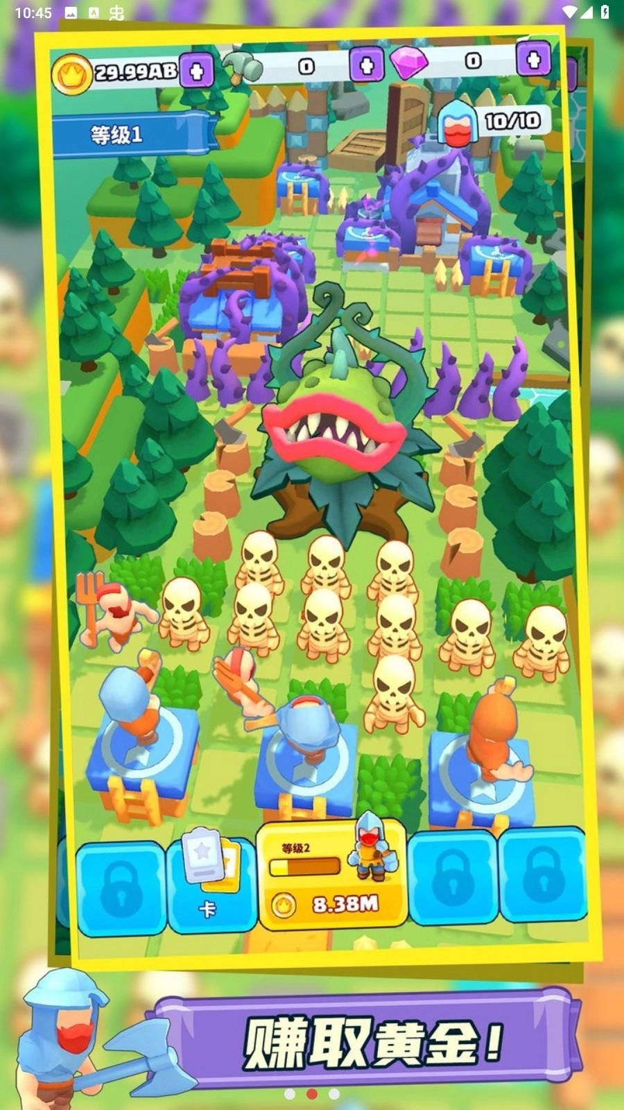 2、在您闲暇时赚取黄金,合并您的战士,解放被占领的村庄与城市。