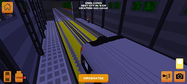 5、点击右下角的相机图标,就能切换不同视角来观察火车的各个部位;当火车到站后,点击相机上方的黄色按钮即可打开车门,现在就开始行动吧!