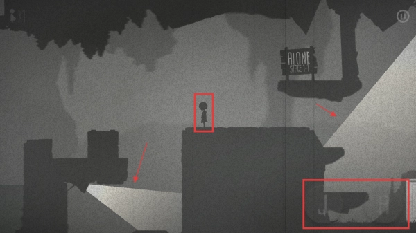 2、进入操控界面后,通过点击屏幕来控制角色移动,按下【J】键可让角色跳跃,按下【A】键能与物品进行互动,需注意避免角色接触灯光区域。