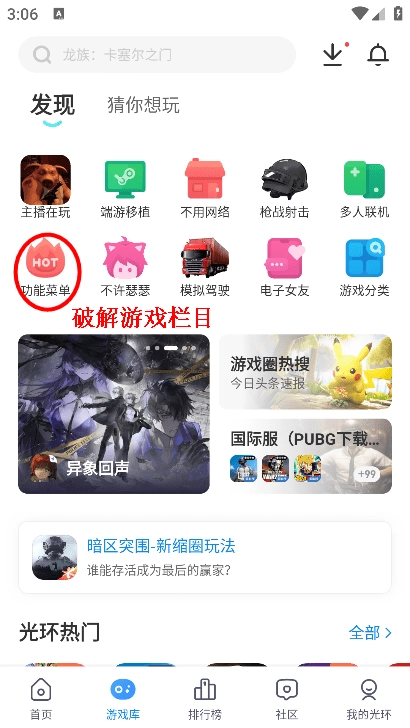 1、先在安装软件后,打开软件,点击"游戏库"。