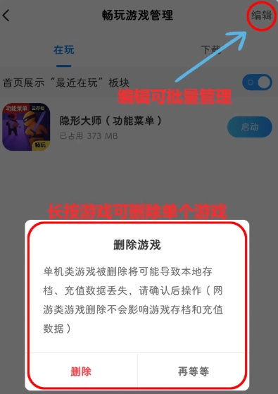 3、最后点击右上方的“编辑”按钮,长按想要移除的游戏,就能单独删除该游戏。