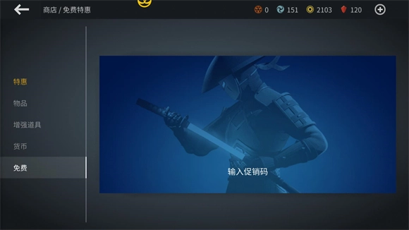 兑换方式:进入游戏后打开商店界面,接着选择“免费”选项,再点击“输入促销码”,把促销码填写到兑换框内并确认,即可完成兑换。
