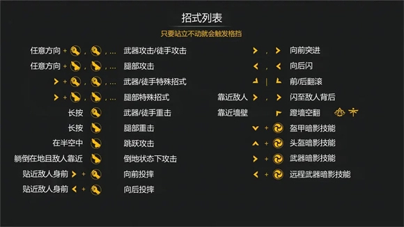 6、和不少格斗游戏的倒地保护机制不同,《暗影格斗3》不存在倒地保护设定,对手倒地时正是绝佳的追击时机。三个派系角色俯卧在地时的起身方式一致,但仰面倒地时的起身动作有所区别:军团甲仰面倒地后起身速度较快,恢复格挡状态的时间也更短,且在起身无格挡的间隙若受到攻击会触发后滚,所以通常难以打出完整连招;王朝甲与先锋甲仰面起身时会做出破绽极大的鲤鱼打挺动作,起身站定后的破绽期内受击不会后滚,几乎可以衔接绝大多数追加招式。因此面对王朝甲或先锋甲的敌人时,用背摔接花招是最简便直接的输出手段。
